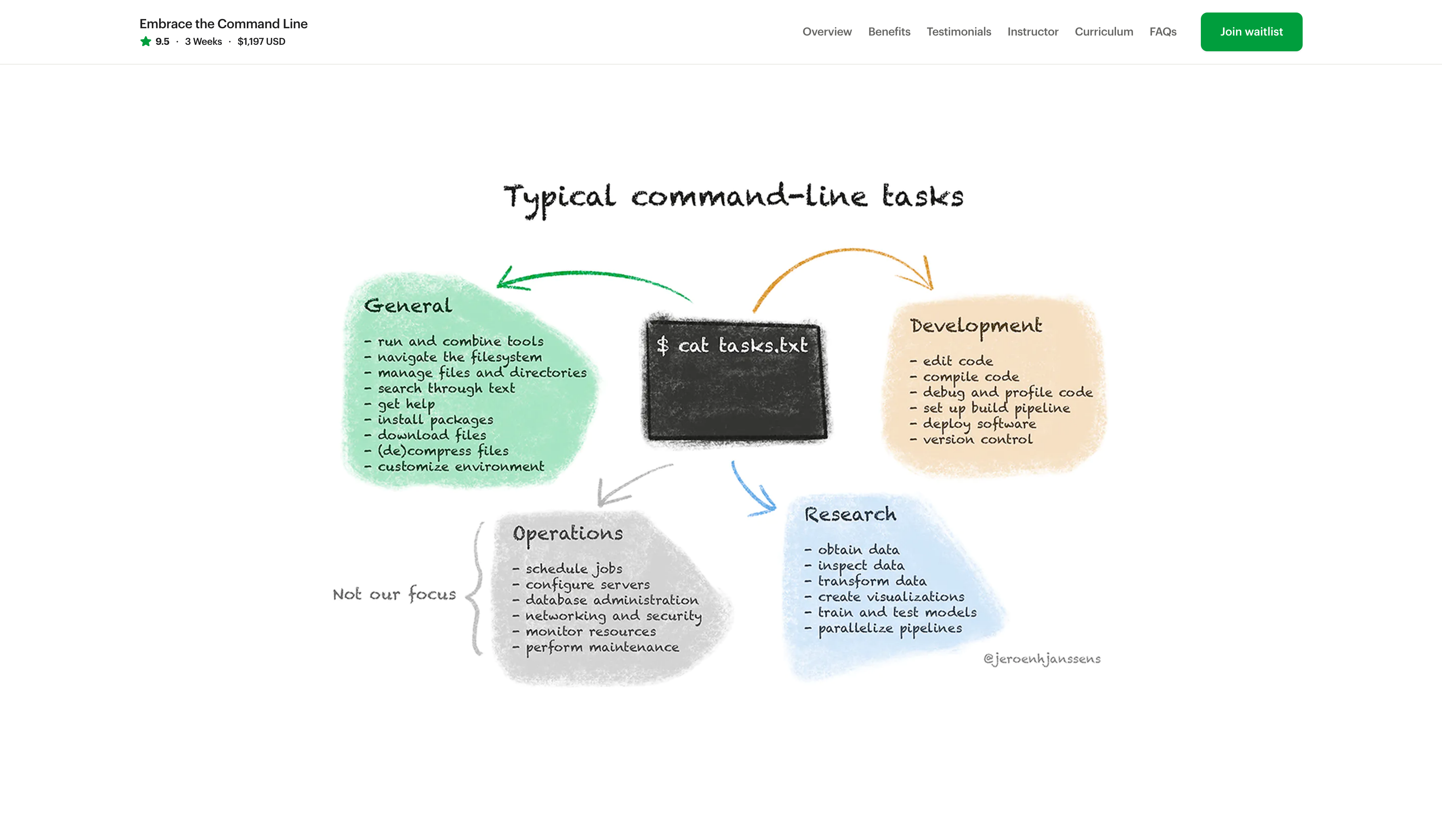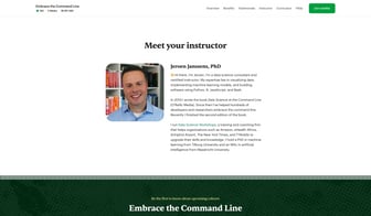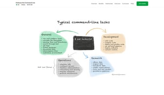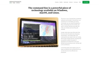 Should the landing page go down, below is most of the copy together with a few screenshots for archival purposes. The video shown in the first screenshot, How Researchers and Developers Can Benefit from the Command Line, can be watched on YouTube: https://www.youtube.com/watch?v=0XI8FPVnNzY.