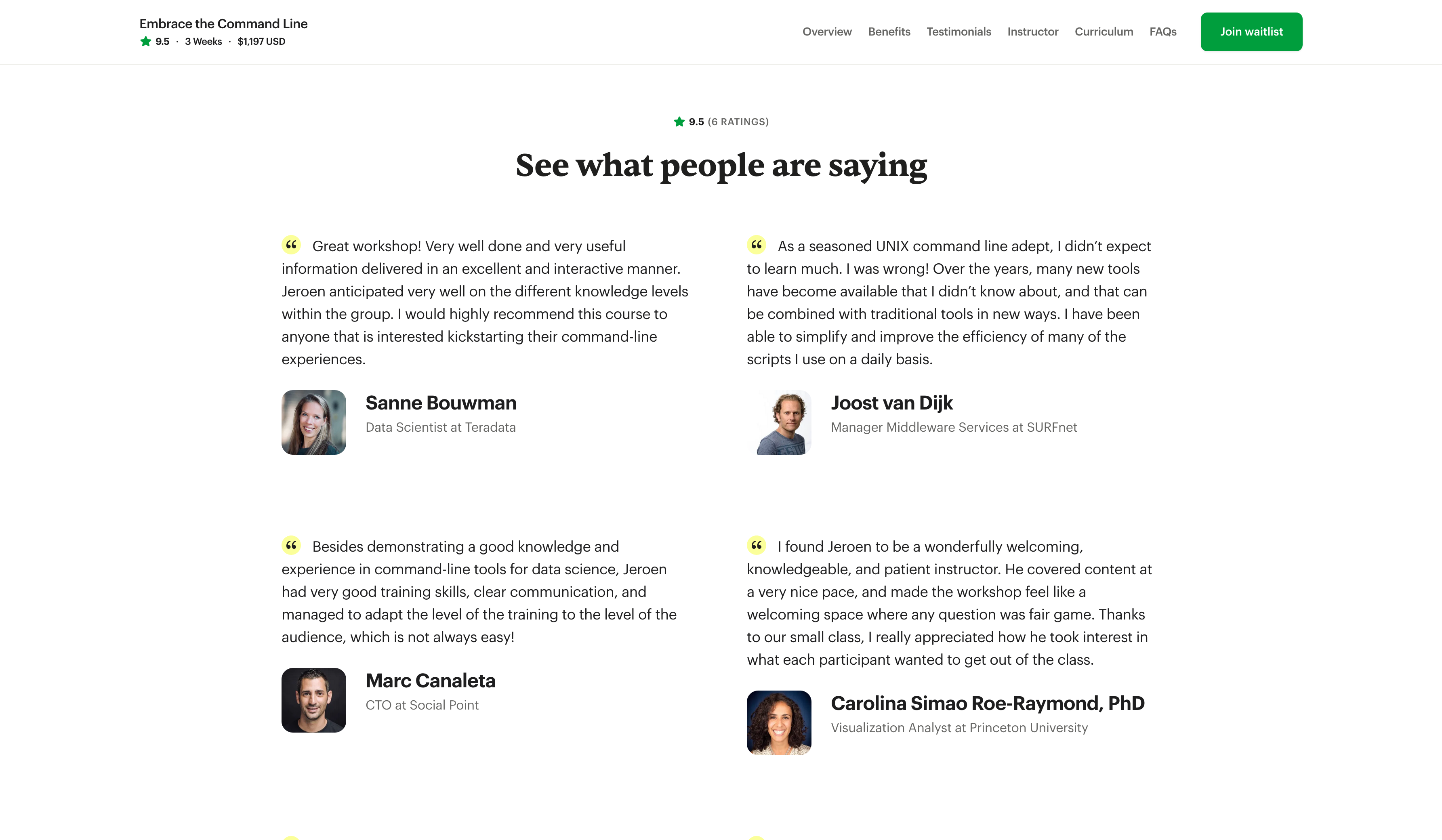 Great workshop! Very well done and very useful information delivered in an excellent and interactive manner. Jeroen anticipated very well on the different knowledge levels within the group. I would highly recommend this course to anyone that is interested kickstarting their command-line experiences.