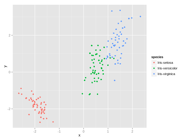 cols -C species body tapkee -m pca | # Apply PCA using tapkee