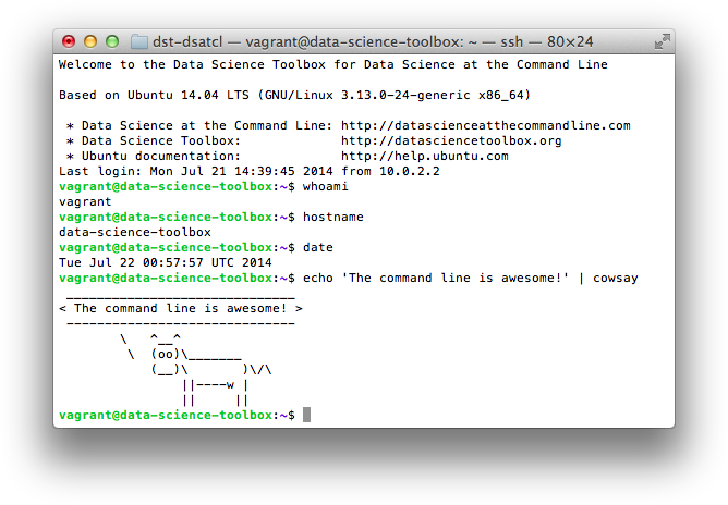 The book introduces over 80 command-line tools, and installing them manually would take the better part of a day. I do offer a virtual machine based on Vagrant and VirtualBox that has everything installed, but I suspect there’s a better way to package this with IBash Notebook. For example, recently, Thomas Wiecki created a Docker container that launches an IPython notebook server with the PyData stack installed. And the tmpnb project seems very promising as well. I must admit that I haven’t had time to look into Docker and these two projects at all.