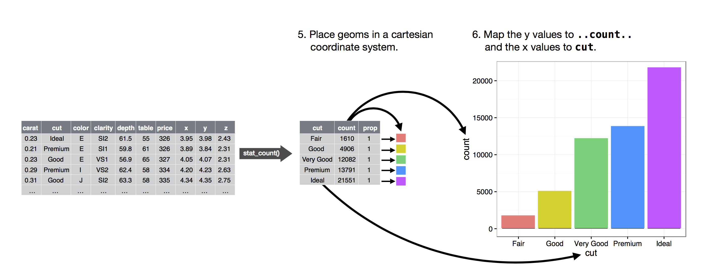 Let’s turn this code into a reusable template for making graphs with plotnine. To make a graph, replace the bracketed sections in the code below with a dataset, a geom function, or a collection of mappings.