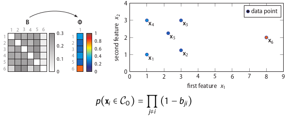 This simple equation corresponds to the intuition behind SOS mentioned earlier: a data point is considered to be an outlier when the other data points have insufficient affinity with it. The proof behind this equation is unfortunately beyond the scope of this post.