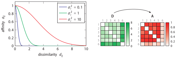 The use of the concept of affinity is inspired by t-Distributed Stochastic neighbour Embedding (t-SNE), which is a non-linear dimensionality reduction technique created by Laurens van der Maaten and Geoffrey Hinton. Both algorithms use the concept of affinity to quantify the relationship between data points. t-SNE uses it to preserve the local structure of a high-dimensional dataset and SOS uses it to select outliers. The affinity a certain data point has with another data point decreases Gaussian-like with respect to their dissimilarity.
