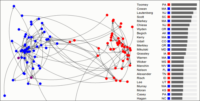 As this was a very brief description of SOS, I had to skip over many details. Again, in case you’re interested, you can read either the technical report (PDF) or chapter 4 of my Ph.D. thesis. In the next section I apply SOS to roll call voting data.
