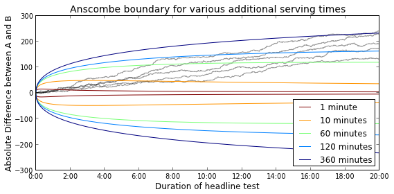 Again, once the absolute difference passes the Anscombe boundary, we are ready to conclude which headline was better.
